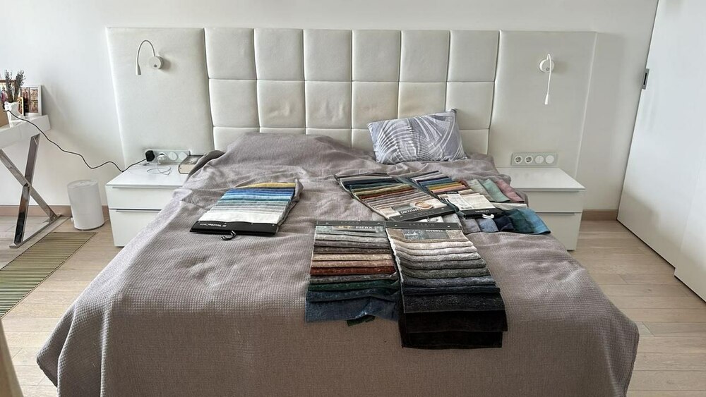 К вам приезжает дизайнер с образцами тканей, который поможет вам определиться с выбором.